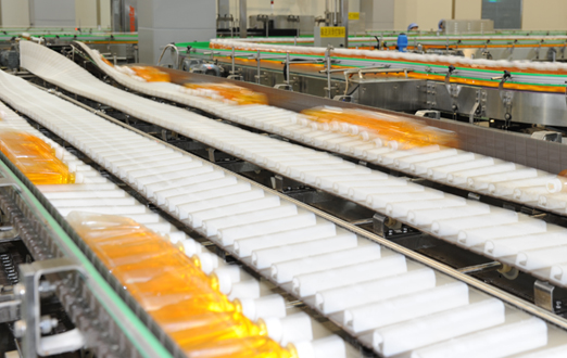 倒瓶杀菌机是根据高温灌装生产线的工艺特点自行研制开发的专用配套设备,该设备将灌装封盖后的产品侧倾,利用产品自身的高温,在一定时间内对瓶盖进行二次杀菌,确保产品的质量。产品在输送过程中通过两条互相垂直的链板导向,实行自动倒瓶、延时杀菌、自动立起,整个过程平稳可靠。