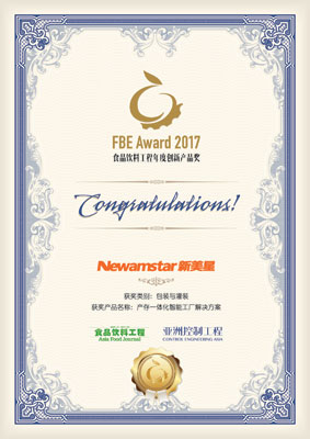 The first day of December witnessed the grand opening of “The Third Food& Beverage Engineering Summit and Annual Innovative Product Award Ceremony in 2017”. In the field of processing technology and equipment, packaging and filling, sensing and instrument, electrical automation and information technology, and drive and motion control, 15 innovative products from 15 enterprises received innovation awards. Newamstar, as the only awarded Chinese enterprise, firstly proposed and delivered “the solution for smart factory featuring production and storage integration” in the industry, and it is this very solution that earned Newamstar the “Food &Beverage Engineering Annual Innovative Product Award”.