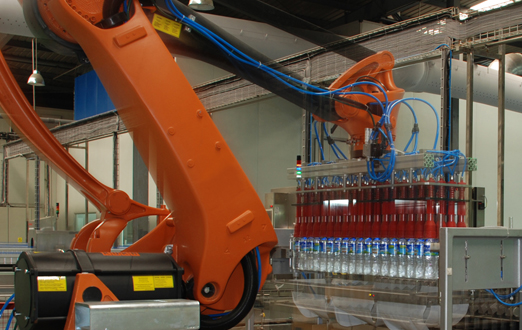 为了使后包装工作建立一个高效率、高柔性的生产作业流程,新美星为客户设计了最佳的机器人解决方案。